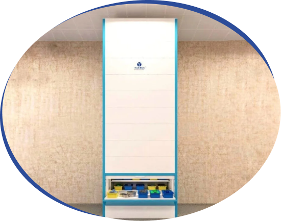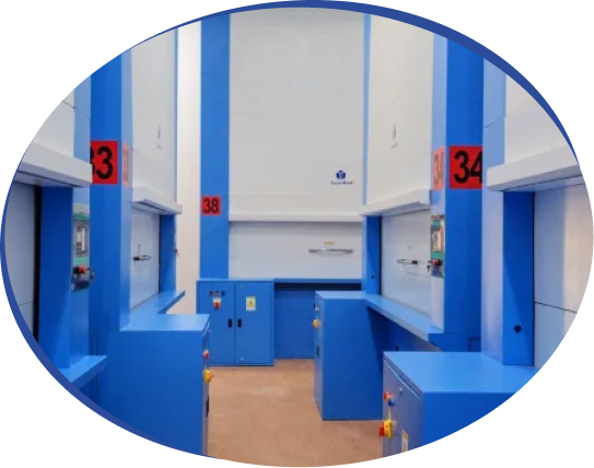 Our Vertical Lift Module (VLM) design automates the storage and retrieval of items, documents, or parts, delivering the most space-efficient Warehouse Storage Solution available.